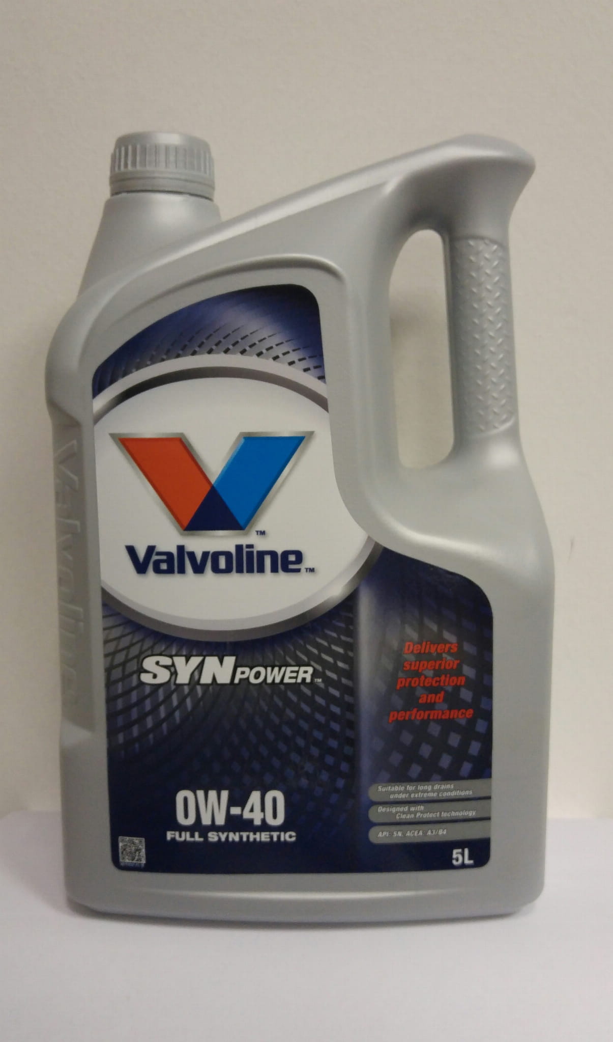 W pełni syntetyczny olej firmy VALVOLINE serii SYNPOWER o lepkości 0W40 może być stosowany w silnikach benzynowych oraz wysokoprężnych, również z turbodoładowaniem. Nadaje się także do zastosowania w jednostkach zasilanych gazem LPG. Zaprojektowany został z myślą o pojazdach ze znacząco wydłużonymi okresami pomiędzy wymianami oleju. Najwyższa jakość zastosowanej bazy olejowej oraz zaawansowany system dodatków uszlachetniających pozwoliły przewyższyć wymagania stawiane przez wiodących producentów samochodów osobowych i lekkich samochodów ciężarowych. Oleje SYNPOWER to przede wszystkim skuteczna ochrona silnika, nawet w ekstremalnych warunkach i wysokich temperaturach. Wydłużają żywotność jednostki napędowej, chronią przed tworzeniem się osadów, laków i nagarów oraz zanieczyszczeniami świec zapłonowych. Ułatwiają rozruch silnika w warunkach zimowych.